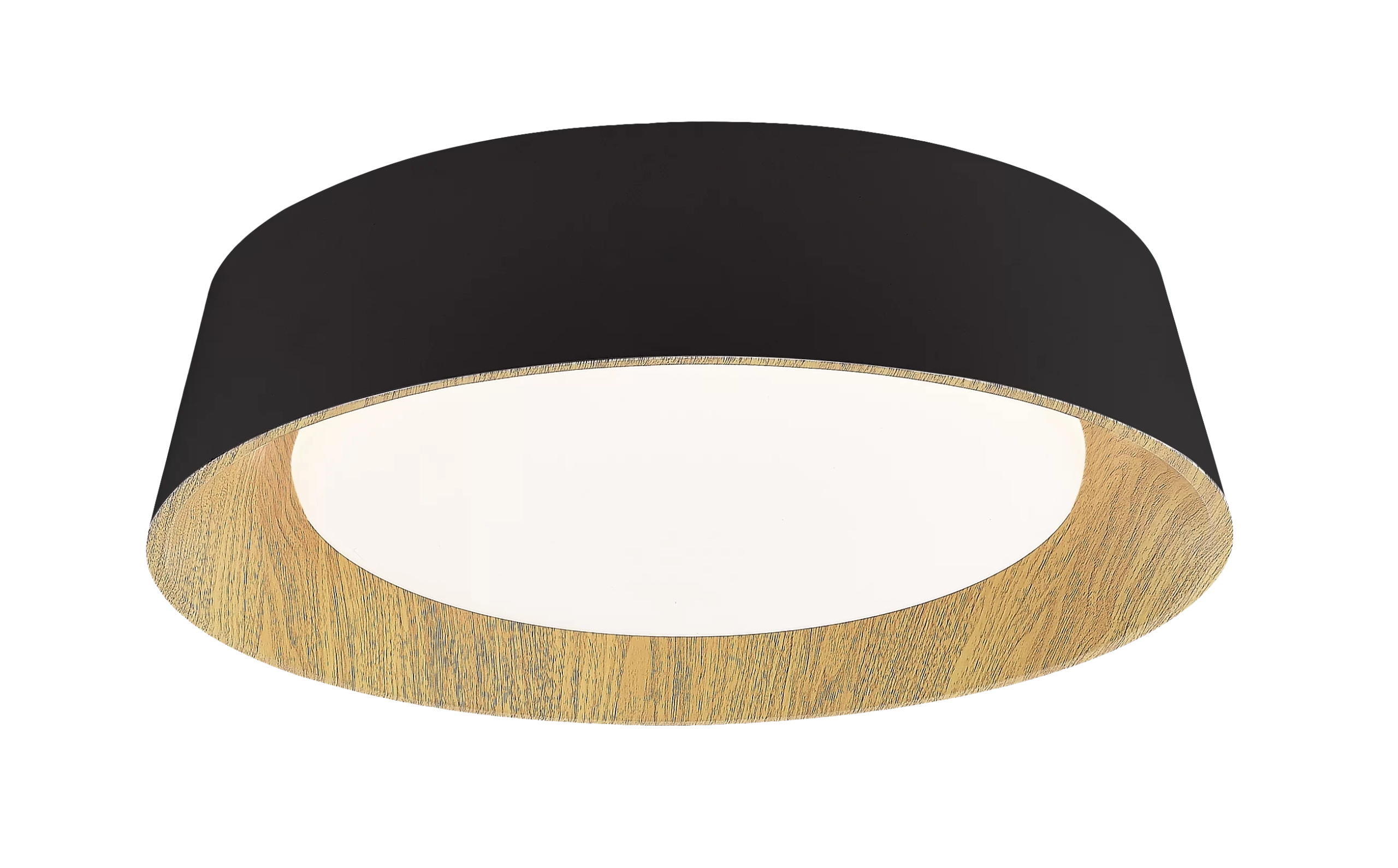 Plafon Dakota. Luminaria de techo circular y de estilo moderno, fabricado en acero con LED integrado. Viene en color blanco o negro con detalles en madera.