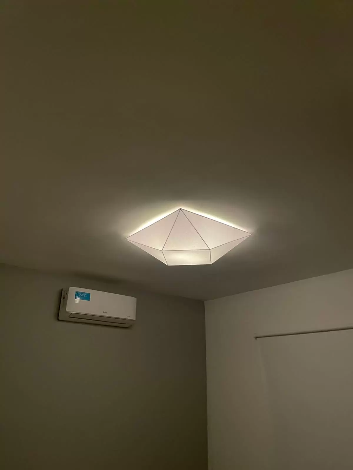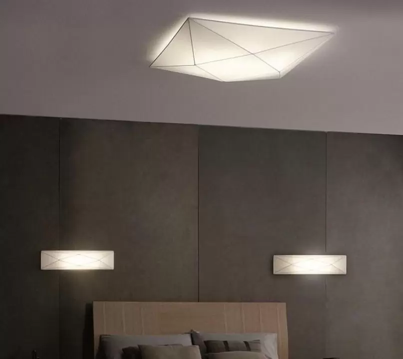Plafón Diamante es una lampara de techo de tela blanca elástica con detalles en cromo disponible en dos medidas.
