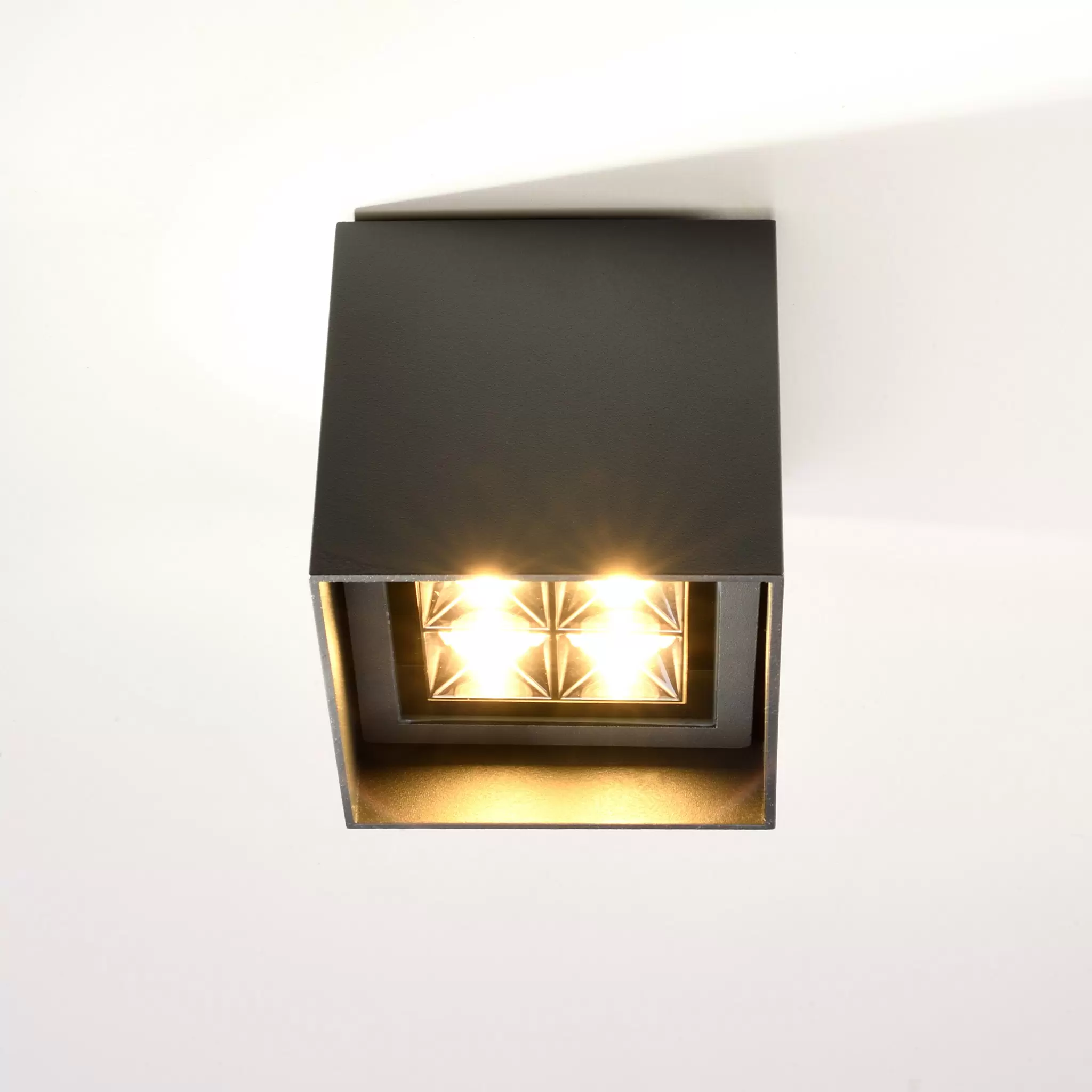 Plafón Oriel es una lámpara de techo en color negro. Esta luminaria viene con LED cálido integrado 3000k de 12w de potencia ideal para colocar en galerías, techos de balcón o espacios de exterior.