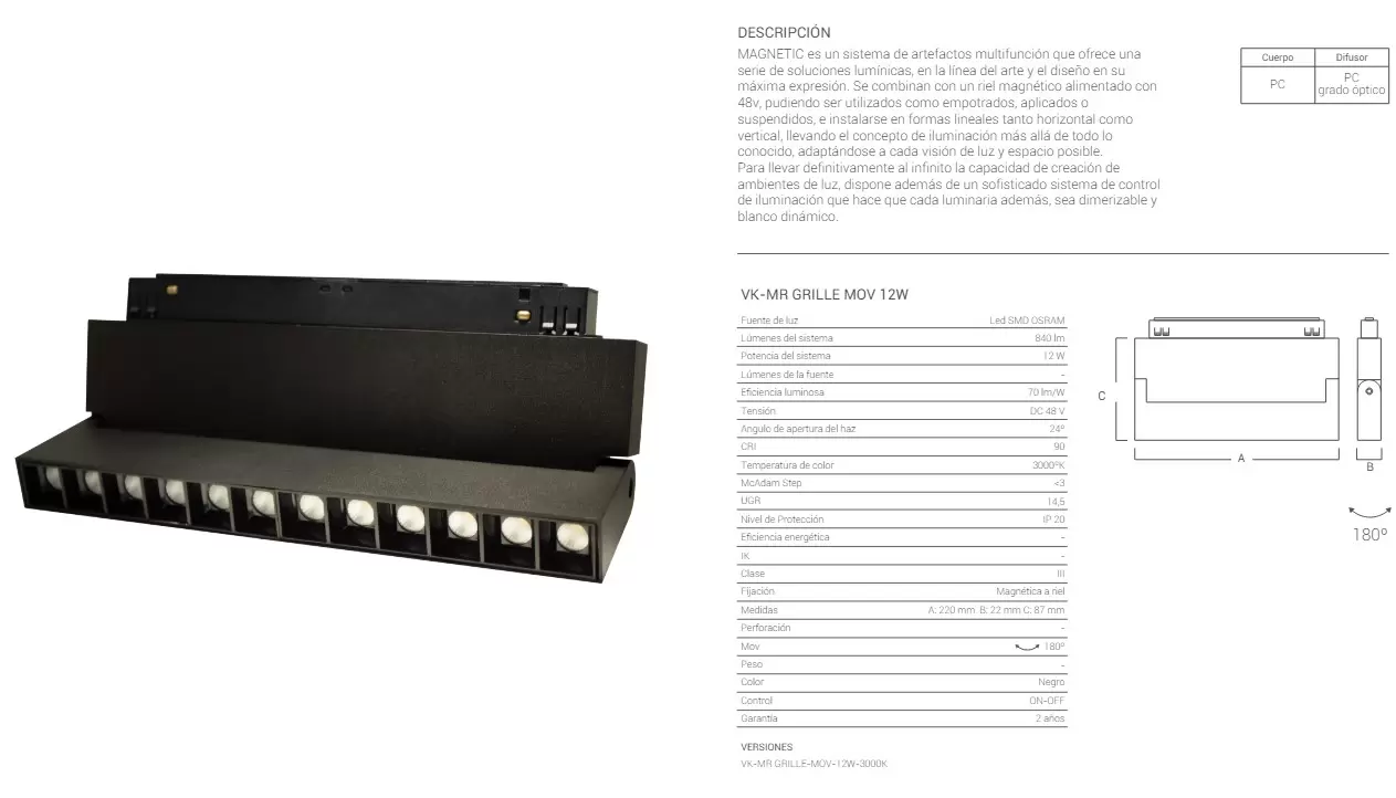 Riel Magnetico Grille Mov es un sistema de artefactos multifunción que permite crear los diseños lumínicos que se deseen. Se utilizan como empotrados, aplicados o suspendidos.