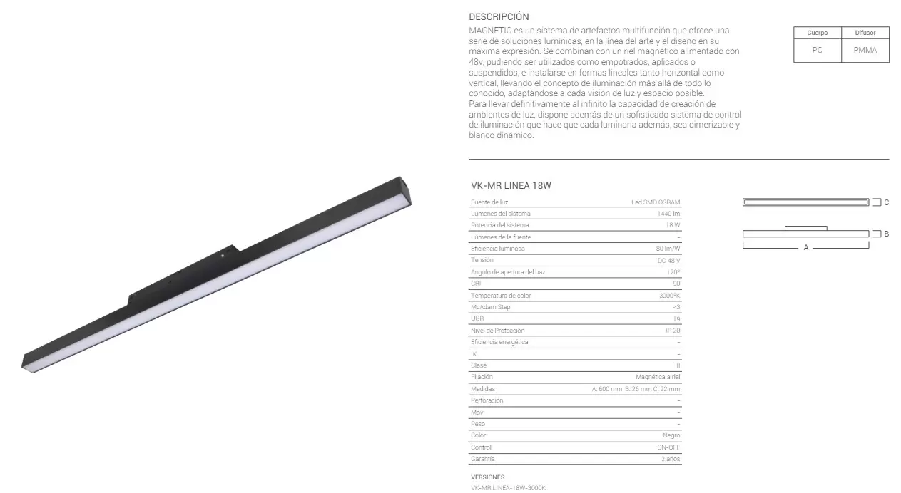 Riel Magnético Linea es un sistema de artefactos multifunción que permite crear los diseños lumínicos que se deseen. Se utilizan como empotrados, aplicados o suspendidos.