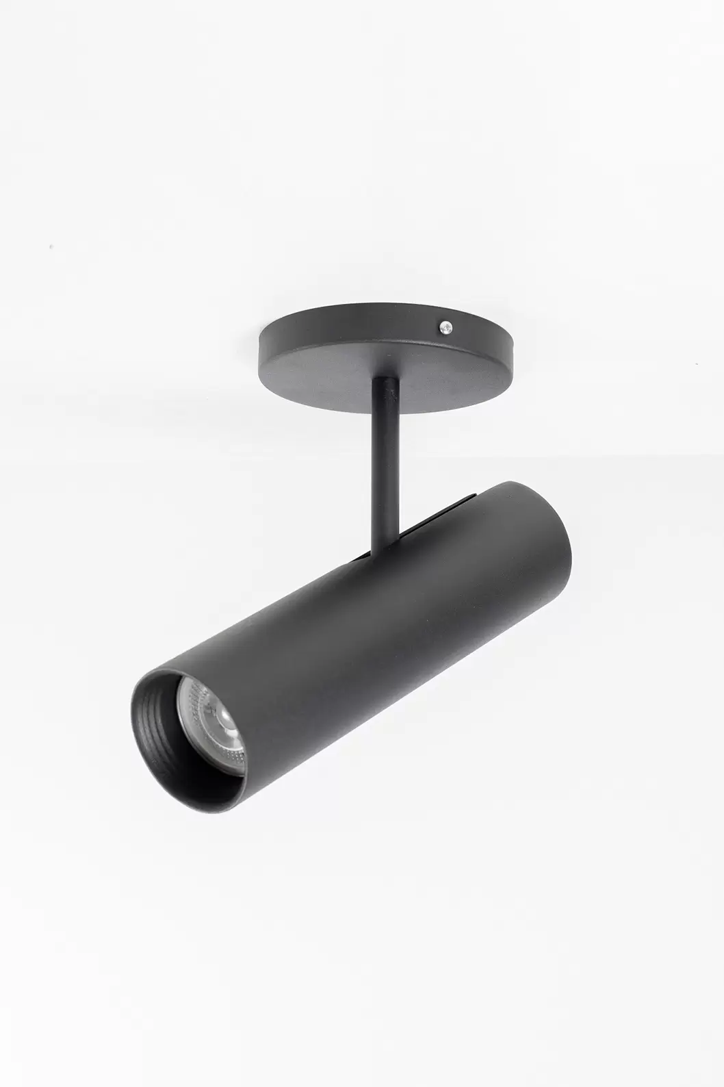 Spot Canon es una lampara de techo direccionable super moderno en color blanco o negro con LED cálido incluido. Te recomendamos esta luminaria de luz focalizada para iluminar cuadros u objetos puntuales en un living, comedor o una circulación. Es ideal para colocar en forma individual o varios en una misma base o riel.